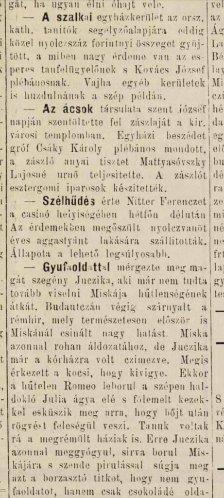 - 1885 – az ácsok felvonulási zászlajának felszentelése